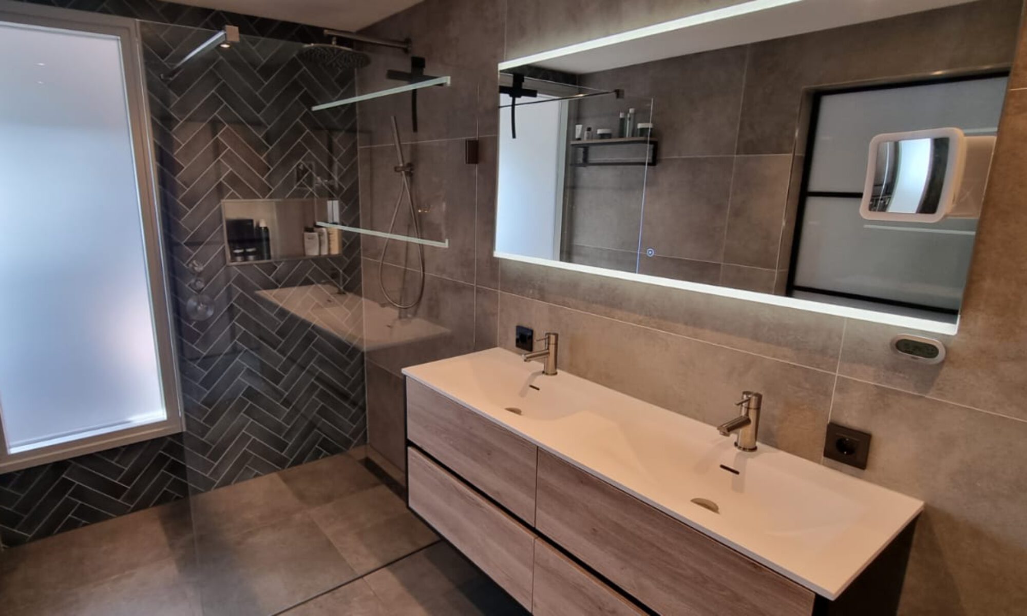 SKB is gespecialiseerd in maat- en precisiewerk voor het verbouwen en renoveren van uw badkamer en/of toilet. Wij verrichten zelf alle werkzaamheden die nodig zijn voor uw verbouwing. Dit houdt onder andere in dat we uw huidige badkamer/toilet verwijderen (mocht dit wenselijk zijn) en vervolgens alles opnieuw opbouwen.Onder het opbouwen kan onder andere het plaatsen of verleggen van leidingwerk, elektra werkzaamheden, het stucen van u muren en het betegelen van wanden en vloeren worden verstaan. Natuurlijk behoort ook het monteren van uw nieuwe sanitair hiertoe.